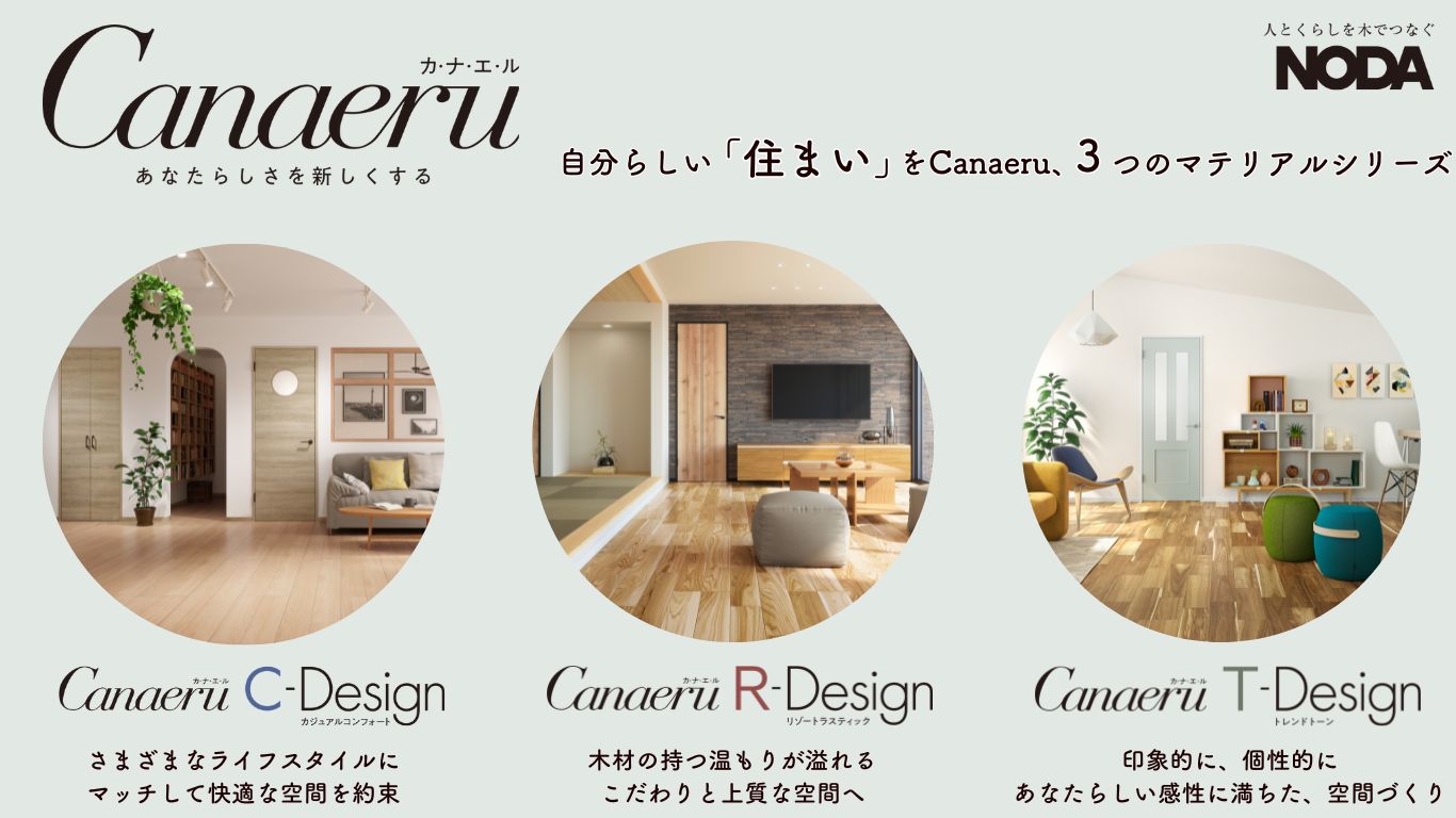「あなたらしさを新しくする」をコンセプトに3つマテリアルシリーズから成る”Canaeru”をはじめ、おススメの床材を展示します。